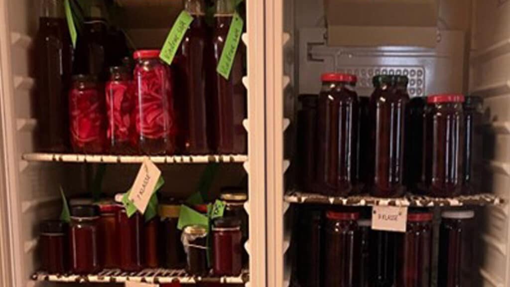 Vi har mange produkter, vi gerne vil have solgt. Der er marmelade, syltetøj, saft, syltede rødbeder, pæretærter, squashkage, æblekager, æblemost mm. Alt sammen er lavet af 100 % bær og frugter fra lokalområdet.